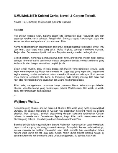 Bertebaran dari sebuah surau di dekat parit, dengan seorang pengajar yang sudah cukup umur…, di sinilah mereka mendapatkan ilmu agama. Aku penggemarmu sejak smp dan terakhir smu kelas 1. Seringkali nilai/ norma tersebut melatarbelakangi pembuatan suatu cerpen, diantaranya adalah: Menurutnya, aktivitas ceramah dan kajian, seharusnya dijadikan sebagai ruang edukasi dan pencerahan. Aku memegangi dua tungkai kakinya yang kurus.
